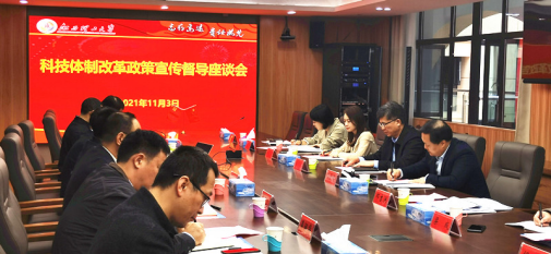 11月3日上午,调研组在江西理工大学举办科技体制改革政策宣传督导座谈会。会上省科技厅政策法规处副处长邓吉洪解读了国家和省有关科技体制改革的配套政策,江西理工大学邱廷省副校长介绍了政策落实情况。陈金桥副厅长指出,贯彻落实好科技体制改革相关政策,是激发科研单位和人员活力的迫切需要。要切实为科研人员松绑减负,努力为科研活动加油鼓劲,充分调动科研单位及科研人员积极性和创造性,切实为地方经济高质量发展提供支撑。