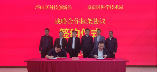 13日上午,章贡区科技局与深圳市坪山区科技创新局在深圳举行建立战略合作伙伴关系框架协议签订仪式,郭澜、陈浩华出席并见证。郭澜表示此次签约开创“特区+老区”科技合作新局面,双方科技交流合作要进一步走深走实,本着“增进友谊、促进合作、互惠双赢、共同发展”的原则,开展科研协同攻关,创新平台共享,推进创新创业合作,携手推动高质量发展。
