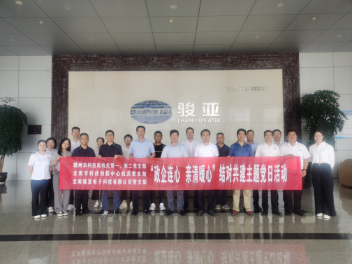 为庆祝“七一”、深入打造让党放心、人民满意模范机关,切实为共建企业办好事、办实事,解决当前面临的实际困难和问题,以实际行动将党的二十大制定的宏伟蓝图落到实处,2023年6月15日(星期四)赣州网上赌搏网站排行榜组织机关第一、第二党支部党员干部与龙南市科技创新中心党支部、龙南骏亚电子科技有限公司党支部联合开展“政企连心 亲清暖心”结对共建主题党日活动。