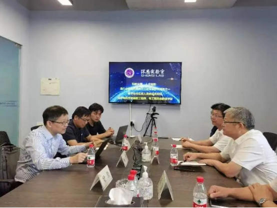 窦良坦一行参观了深思实验室产业示范平台,听取杨军院士讲解通用人工智能、先进制造与智能制造、空天和深海深地等技术的科研成果与产业化应用,并开展深入座谈交流。