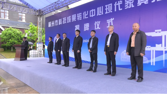 市委常委、副市长何琦,网上赌搏网站排行榜党组书记、局长郭澜,区委副书记、区长李赣兴,市政府办副主任鲁华永共同为赣州市科技成果转化中心现代家具分中心揭牌。